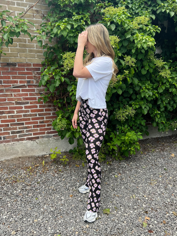 Soft flared broek met bloemenprint. De broek heeft veel stretch.