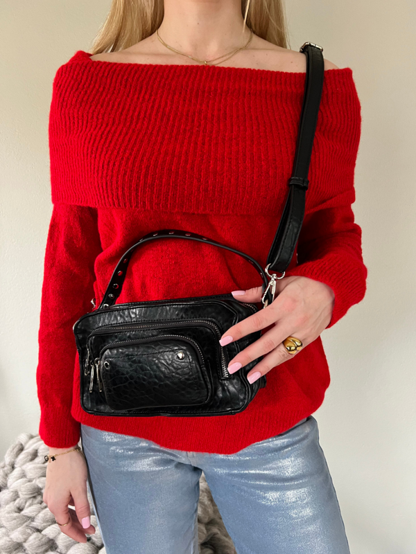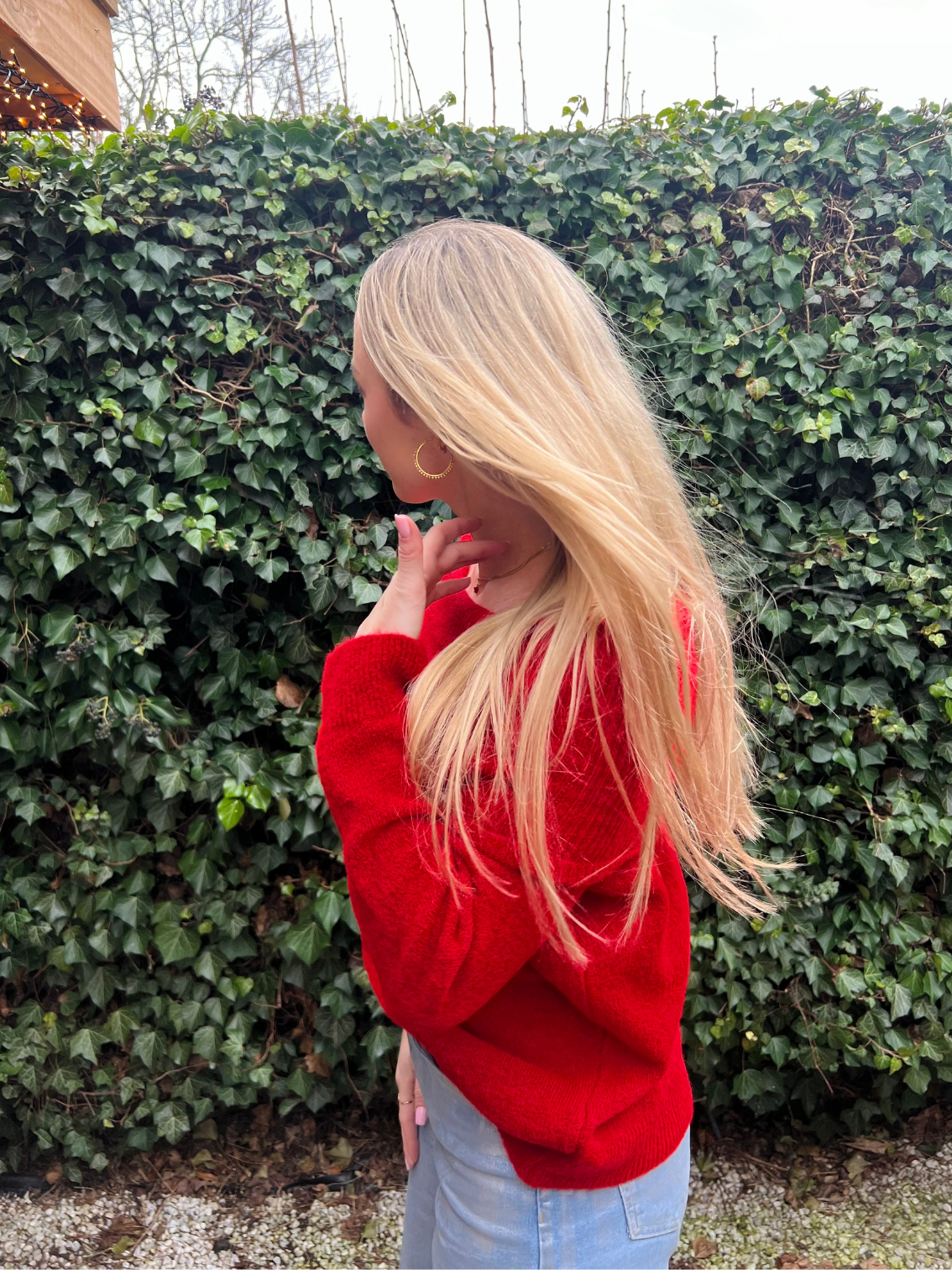 Mooie off-shoulder trui in de kleur rood. Verkrijgbaar in maat One Size. De trui heeft veel stretch.