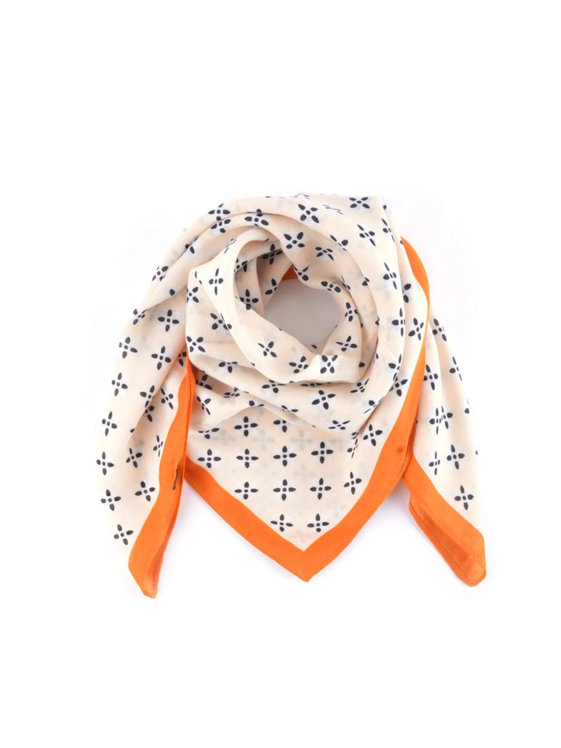 Zomer sjaal met bloemenprintje en oranje details.