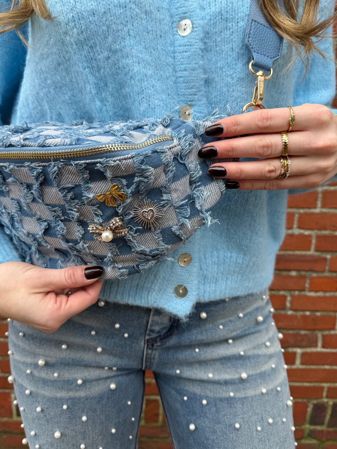 Tasje die je kunt dragen als heuptasje of als crossbody bag. De tas heeft een leuke denim print.