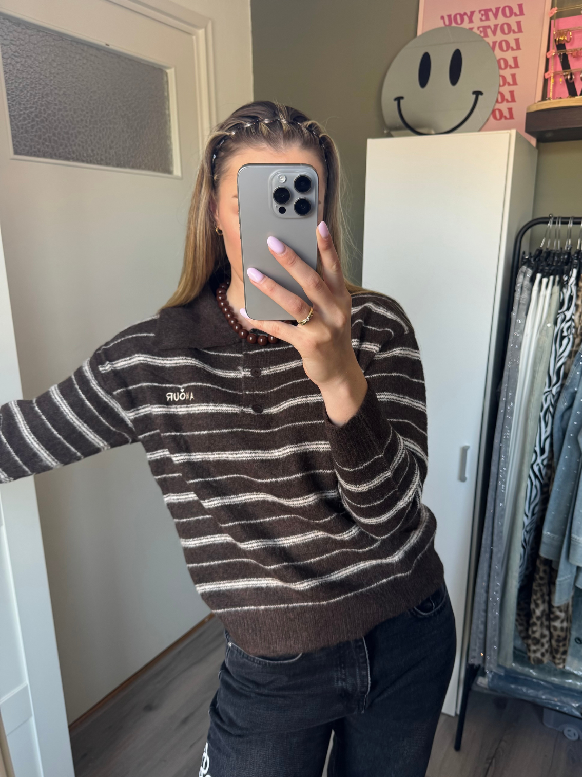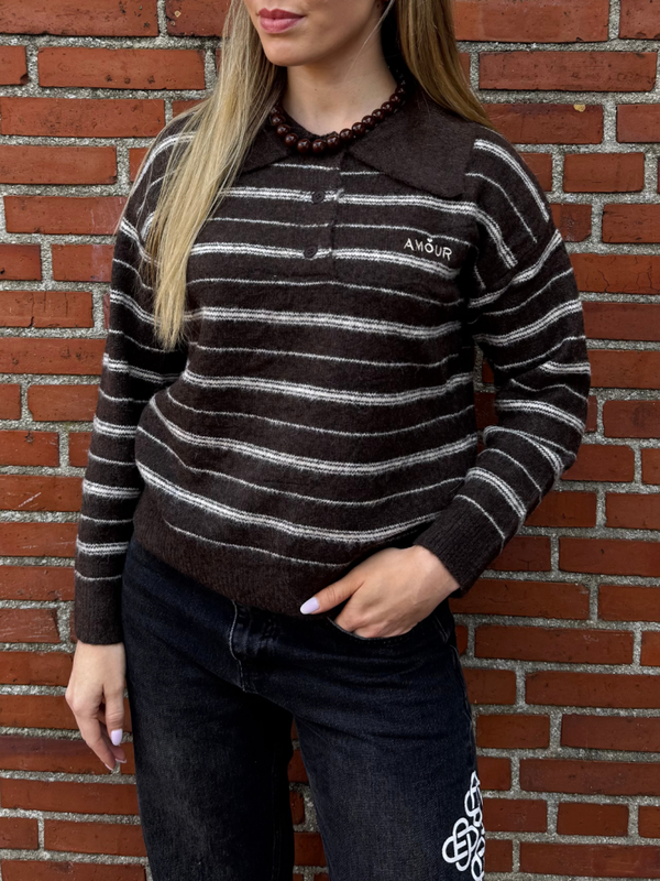 Super zachte polo knit in de favoriete bruine kleur.
