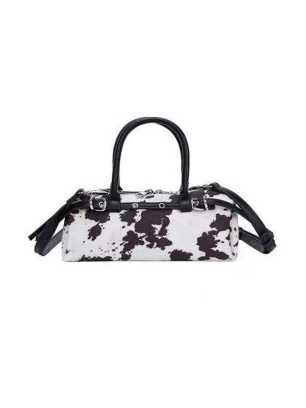 Handtas met donker bruine dierenprint en zwarte kunstlederen details. Inclusief langere schouderband.