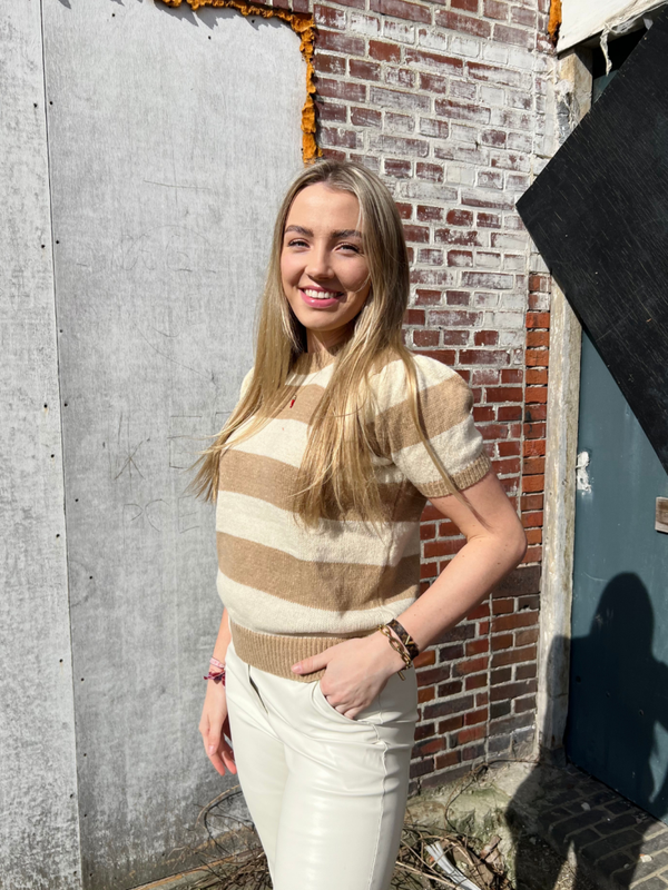 Trui met strepen en korte mouwen. Verkrijgbaar in maat one size.