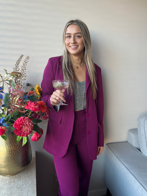 Mooie oversized blazer in een donkerroze kleur. Leuk om te combineren met de bijbehorende pantalon!