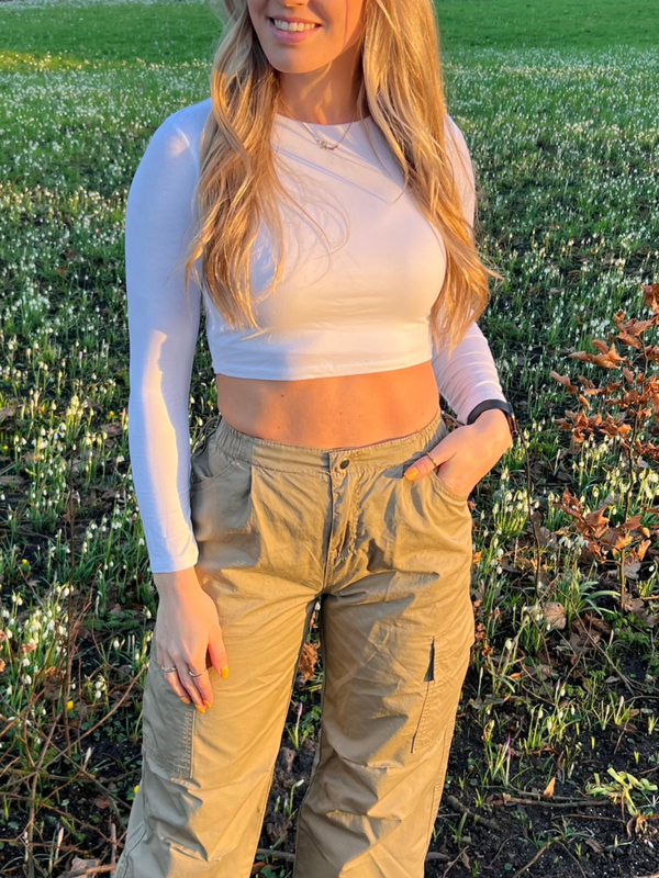 De nieuwste trend van nu, de parachute jeans! De broek heeft wijde pijpen, met aan de onderkant en in de taille verstelbaar elastiek.